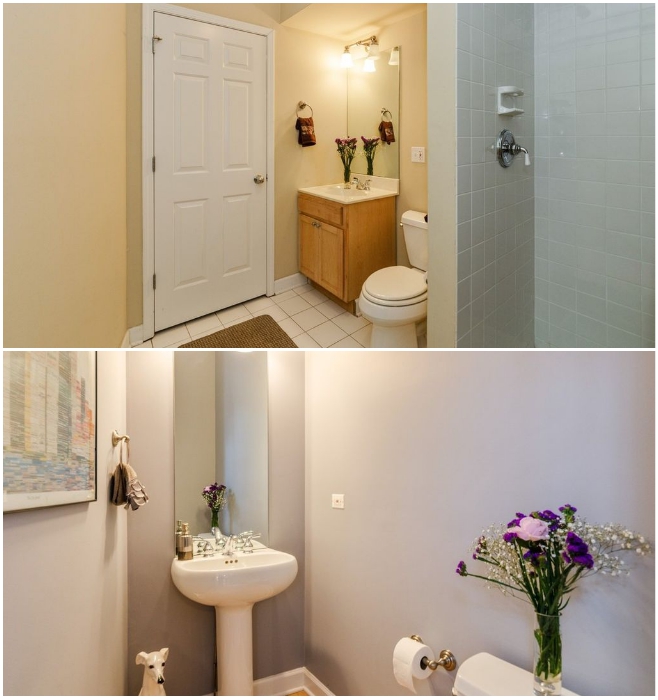 Две остальные ванные комнаты расположены в узкой части дома, на каждом из этажей («Pie house», Дирфилд). | Фото: odditycentral.com/ lemurov.net.