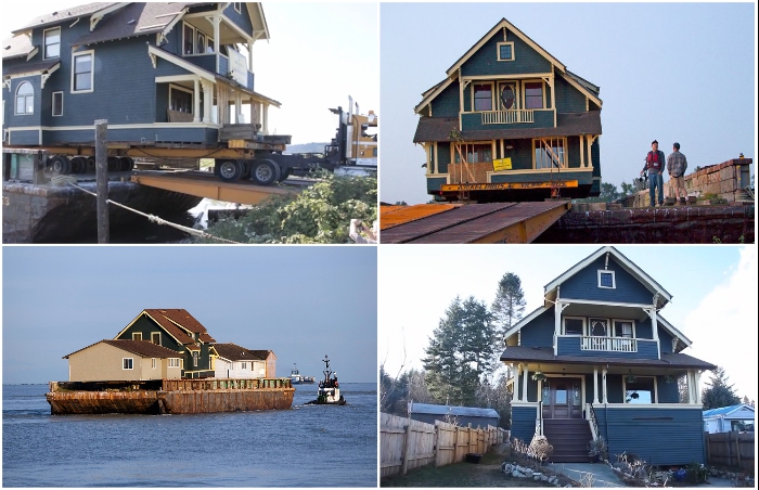 Кто не мечтал, чтобы его домик очутился в том месте, где он на данный момент работает, учится или просто хочет переехать в другой населенный пункт вместе с ним? Казалось бы, фантастика, но подобные «переезды» активно практикуют в некоторых странах. Особенной мобильностью капитальные дома обладают в Канаде, где миграция недвижимости считается делом обычным. Ярким тому подтверждением стало «путешествие» сразу несколькими видами транспорта старинного дома, построенного еще в начале прошлого века в Ванкувере. Предприимчивые владельцы решили перевезти его целиком на небольшой остров, где расположен живописный городок Юнион-Бей.