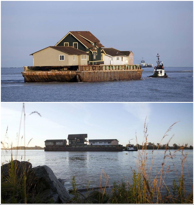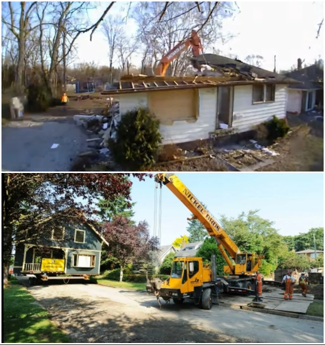Интересный факт от Novate.ru: «Переезды» целых домов в Канаде - довольно привычное дело. Благодаря профессионалам дом, как правило, созданный с использованием каркасных технологий, надежно фиксируется по периметру и срезается с фундамента, после чего устанавливается на специальные платформы. Эти платформы можно транспортировать тягачами или баржами, если требуется пересечь водные преграды. На новом месте он устанавливается на заранее подготовленном фундаменте. Такими манипуляциями занимаются компании, практикующие покупку старых домов, идущих под снос. Для начала они их покупают, вывозят с участков, полностью реставрируют, а затем по более доступным ценам отправляют в любую точку страны.