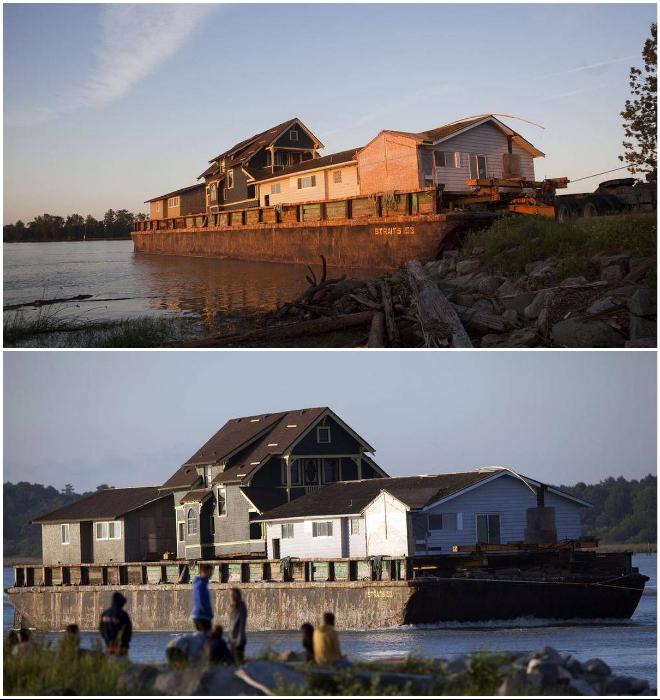 Предварительно оговорив условия сделки и стоимость, которая оказалась всего лишь 100 тыс. дол. (средняя стоимость пригодного для жизни дома такого же размера стартует от 750-800 тыс. дол.), Форды обратились за помощью в компанию, занимающуюся такого рода перевозками. Поскольку этот очаровательный домик был каркасником да еще и очень старым, его решили не разбирая перевезти из Ванкувера в свой город в полностью собранном виде. По отработанной годами технологии старинный дом поместили на специальную платформу и отправили в порт Ричмонда для дальнейшей отправки.
