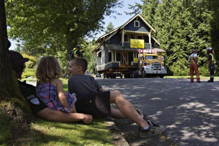 Больше всего транспортировка дома понравилось детям (Union Bay, Британская Колумбия). | Фото: theglobeandmail.com.