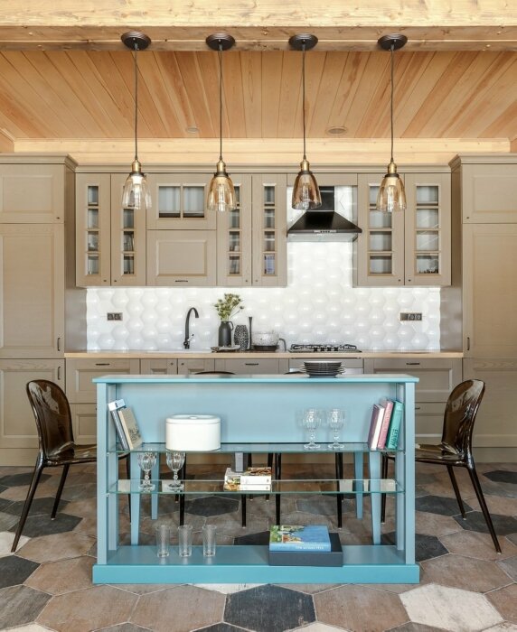 Эффектное сочетание крашеного дерева и прозрачных стеклянных полочек. /Фото: images.cdn.inmyroom.ru