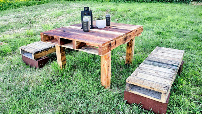 Уличная мебель отличается простотой и незамысловатостью внешнего вида. Даже если сделать самостоятельно самый банальный вариант, то смотреться на газоне он будет красиво и органично. К набору из скамеек и стола можно добавить мягкие подушки, сшитые своими руками или купленные в магазине, несколько клумб с цветами или тенистое дерево, и тогда стильная и комфортная зона отдыха будет готова.