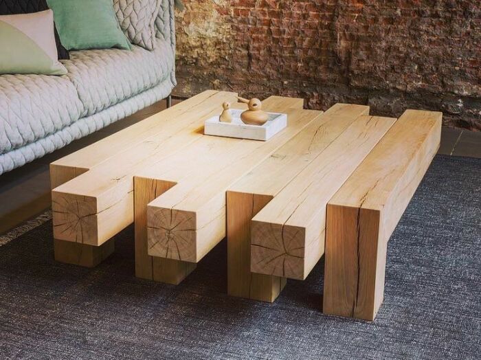 Из остатков древесины можно создать очень оригинальный и атмосферный кофейный столик. /Фото: i.pinimg.com