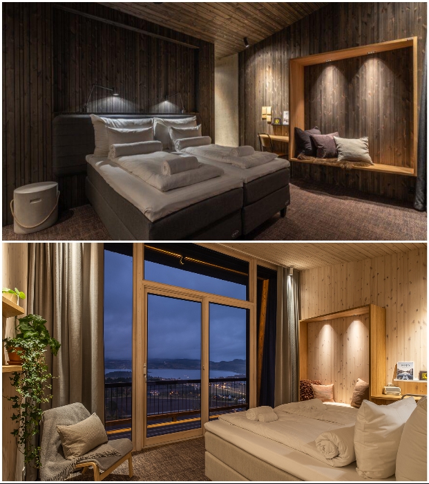 Чтобы из каждого номера открывался незабываемый вид на фьорд Тронхейм и залив Норвежского моря, люксы отеля имеют радиальную планировку и огромные окна с пола до потолка, а также раздвижную стеклянную дверь с выходом на балкон. Это не может не понравиться гостям, приехавшим отдохнуть от городской суеты, тем более, что в каждом номере созданы все условия для комфортного проживания: спальня с двухместной кроватью, ванная комната и небольшая гостиная. А для того, чтобы постояльцы могли наслаждаться отдыхом в любую пору года, в номерах установлены кондиционеры и созданы теплые полы.