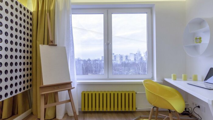 Желтая батарея в тон другим ярким акцентам комнаты. /Фото: 24tv.ua