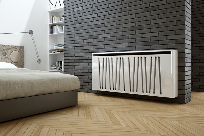 Металлический экран для батареи в стиле минимализма. /Фото: trendy-living.cz