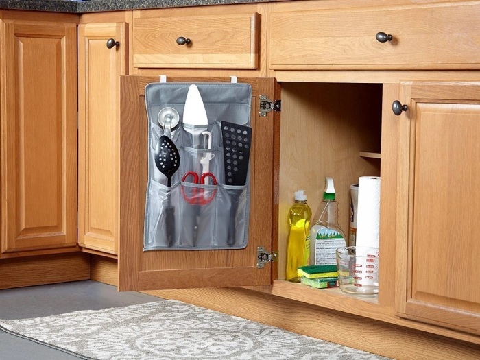 Подвесной органайзер на двери в кладовку добавляет место для хранения припасов. /Фото: cdn.homedit.com