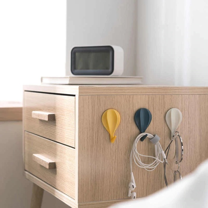 Опять же, сверлить мебель шурупами абсолютно не обязательно, в продаже есть различные виды самоклеящихся держателей: от крючков до небольших полок. Они достаточно крепко фиксируются на поверхности и справятся с легкими предметами. Например, на стенке комода можно подвешивать постоянно носимые украшения, а в держатель на стенке шкафа прятать тапочки от домашних животных.