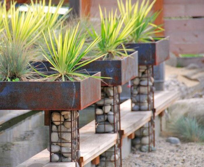 Подставка для растений из габионов. /Фото: tuinenstruinen.files.wordpress.com