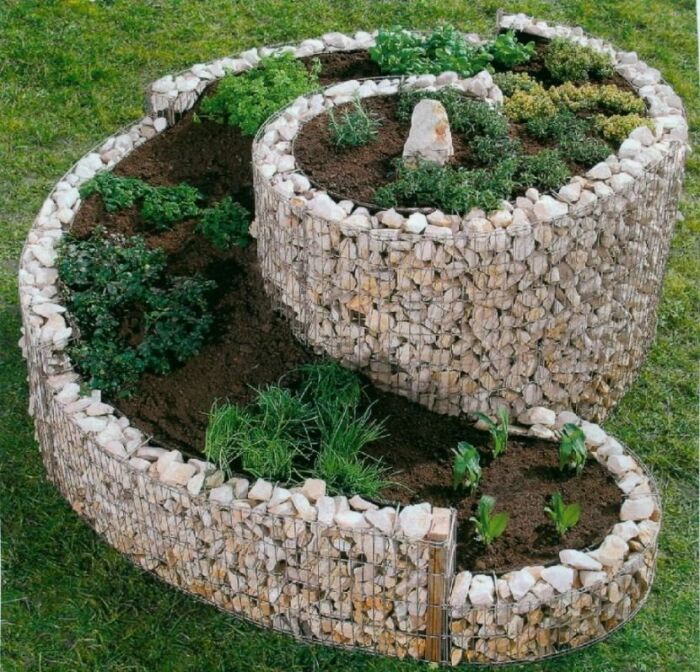 Особый раздел построек из габионов отводится клумбам. Они могут быть очень эффектными и красивыми. С помощью сетки и камней достаточно просто сделать клумбу любых размеров, стиля, высоты и формы, которая будет уникальной и неповторимой. На ней можно высаживать растения различных цветов и видов, создавая оригинальные композиции.