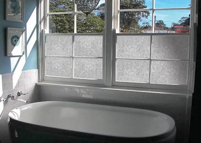 Шторы позволяют защитить свое личное пространство, а когда мы убираем их, то сразу теряем контроль над конфиденциальностью комнаты. Кроме того, появляется вопрос, что делать с потоками дневного света, которые беспрепятственно попадают в комнату. Обе проблемы могут с легкостью решить матовые стекла, защищающие помещение от прямых солнечных лучей. Обратите внимание, что совсем не обязательно делать окно полностью матовым. Можно закрыть только его часть или нанести на стекло пескоструйный рисунок.