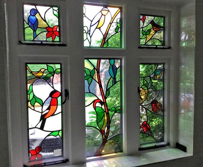 Вопреки всеобщему мнению, витражные окна гармонично вписываются не только в классический интерьер. Если правильно подобрать цветовую гамму, а также грамотно обыграть их и добавить в помещение несколько элементов в похожем стиле, они прекрасно будут смотреться и в современной обстановке. Обратите внимание, что от размера окна напрямую будет зависеть эффектность витража – чем оно больше, тем лучше будет смотреться рисунок. Если в ваши планы не входит делать специальное остекление с витражами, можно воспользоваться более практичной и бюджетной альтернативой, а именно – витражной пленкой. Она прекрасно заменит шторы и сохранит вашу конфиденциальность, а при желании вы сможете без труда заменить ее на что-нибудь другое.