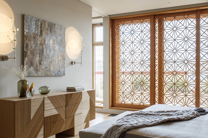 Резной декоративный экран отлично вписывается в комнату. / Фото: design-homes.ru