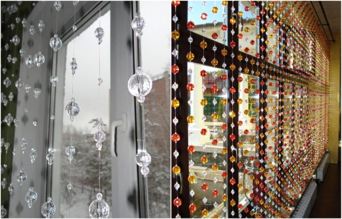 На первый взгляд они могут показаться немного устаревшими, подходящими исключительно для декора межкомнатных дверей. Однако экземпляр, подобранный в подходящем стиле и цветовой гамме, сможет вас приятно удивить. Бусы вместо штор добавят интерьеру легкости, динамичности и жизнерадостности. При выборе материала опирайтесь на стилистику комнаты. Для интерьера в стиле эко подойдут деревянные бусы, для хай-тек – стеклянные, для лофта – металлические, для средиземноморского – из ракушек, и так далее.
