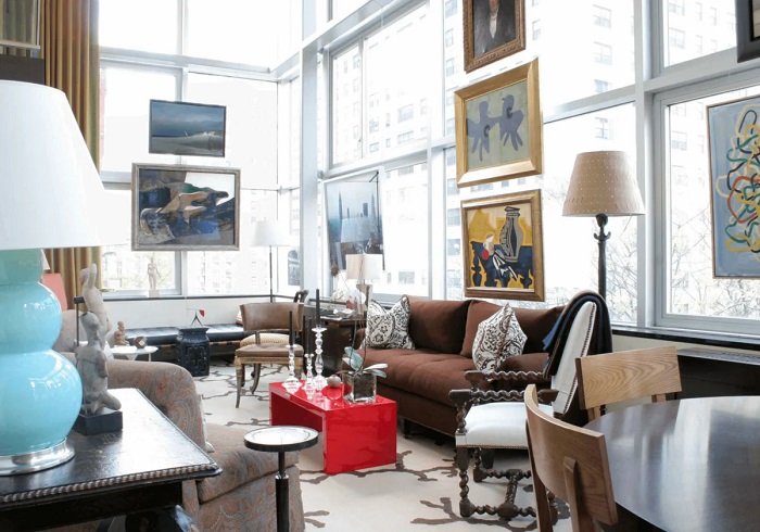 Если в вашей квартире большие, высокие окна и вы являетесь фанатом искусства, вариант «оконной галереи» как раз для вас. В этом случае место тяжеловесных штор займут картины, рисунки или панно, расположенные по всему периметру. Во-первых, благодаря естественному освещению, которое меняется на протяжении дня, произведения искусства будут восприниматься по-новому в разное время суток. А во-вторых, эта зона станет необычным и очень стильным дополнением комнаты, вне зависимости от того, какой у вас интерьер: лофт или скандинавский.