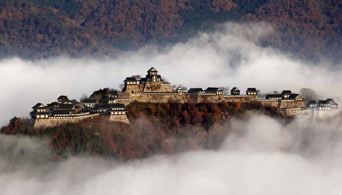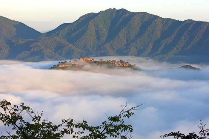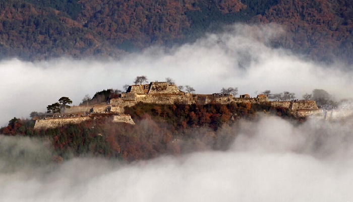 «Парящий» в небесах замок Такеда является древней достопримечательностью префектуры Хего. Особенно впечатляет он в утренние часы, когда туман закрывает часть горы, на которой он расположен. Именно тогда этот горный город кажется плывущим на облаках. Неординарную красоту и при этом абсолютную недоступность заметил в 1443 г. крупный военный феодал Яман (его еще называют «красным монахом»), который и построил замок. Кстати сказать, этого военачальника считают ответственным за погружение Японии в век хаоса, более известного как период Сенгоку.