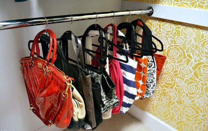 Если хранить сумки на вешалках, ручки испортятся. / Фото: pinterest.ru