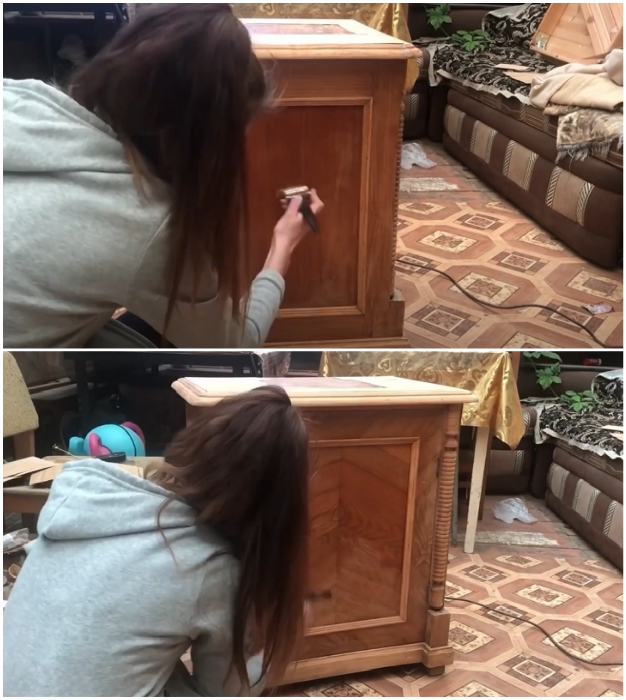 Девушка давно мечтала установить ретро-тумбу под раковину в ванной, но никак не попадался подходящий вариант, а приобрести подобный комплект было очень дорого. Но в один летний вечер ей улыбнулась удача - ей досталась добротная тумбочка, хотя и в очень плачевном состоянии. В таком виде ее использовать было нельзя, поэтому Мария с сестрой принялись ее реставрировать. В этом деле у девушек есть определенный опыт, поэтому в доме нашелся подходящий инструмент и материалы.