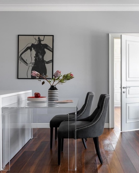 Прозрачный стол в интерьере кухни. / Фото: admagazine.ru