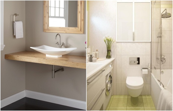 Подвесной унитаз и раковина занимают минимум места