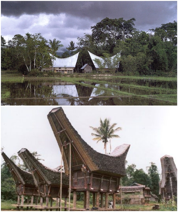 На севере острова Суматра живет народ батаки, у которого жилища являются полной противоположностью фале, поскольку в их домах нет ни окон, ни дверей. Хотя внешне эти сказочные избушки выглядят более чем привлекательно. Узкие длинные сооружения с седловидными крышами, покрытыми волокном сахарной пальмы, больше похожи на домики сказочных фей, только жить в них не так привлекательно. Мало того, что в дом попасть можно только лишь через люк в полу, так еще и обитать придется в постоянной темноте.