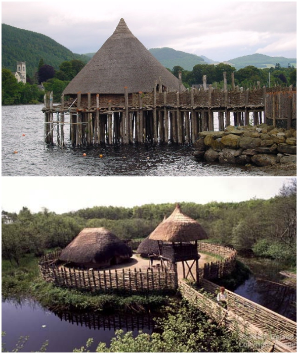 В Ирландии до сих пор можно увидеть интересные домики под названием краннонг, которые находятся среди озер и прудов. Людям не всегда удавалось найти природный островок, поэтому приходилось создавать деревянную платформу на высоких опорах. Такое месторасположение считалось самым безопасным, хотя и устраивалось на мелководье. Сам же дом в большинстве случаев возводился из местной древесины и начинали его строить вокруг очага. Добраться чужакам к краннонгу можно было лишь по воде на лодке, а вот диким животным и этот путь был отрезан. Некоторые поселения имели собственные мостики на опорах, но они закрывались, а в случае опасности дополнительно охранялись.