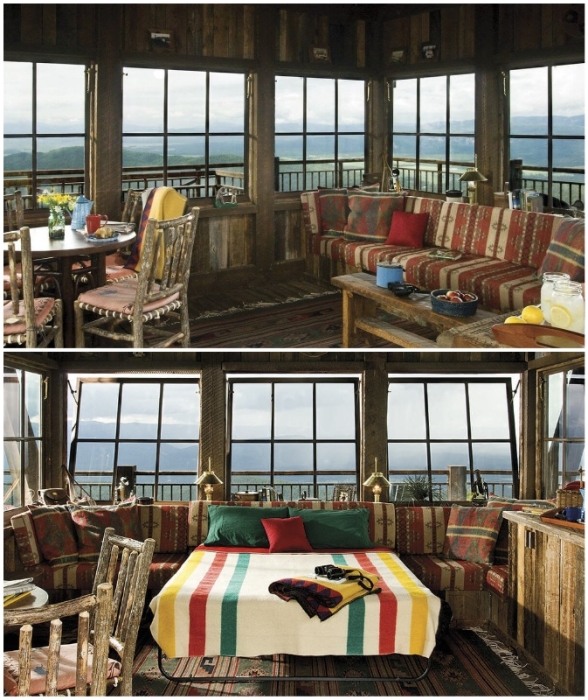 Общее жилое пространство на верхнем уровне пожарной вышки (Уайтфише, США).