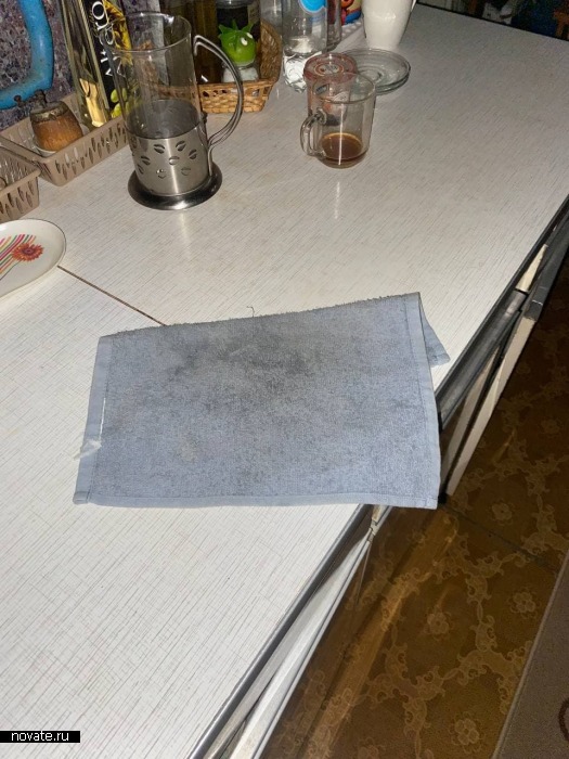 2. Полотенца на столешницах и других горизонтальных поверхностях кухонных секций