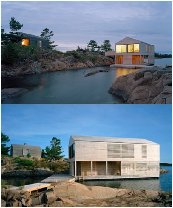 Двухэтажный плавучий дом – идеальное место для жизни на лоне природы и для работы на свежем воздухе (озеро Мускока, Канада).
