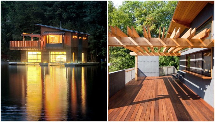 Двухэтажные плавающие коттеджи на берегу озера Юнион порадуют неординарной планировкой (Сиэтл, США). | Фото: ro.pinterest.com.
