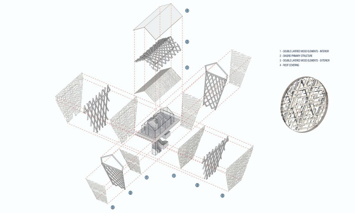 План-чертеж деревянной конструкции номера для эко-курорта Tree Suites (проект Peter Pichler Architecture).