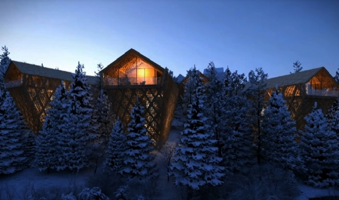 В австрийских Альпах в скором времени появится 7-звездочный горнолыжный эко-курорт Tree Suites, который порадует любителей роскоши и романтики. Удивительные домики вычурной конструкции будут приподняты высоко над заснеженной землей. А чтобы гости, привыкшие отдыхать исключительно в комфортабельных условиях, не утруждали себя подъемом к верхушке дерева, предусмотрены стеклянные лифты, которые в считанные секунды доставят в шикарные апартаменты.