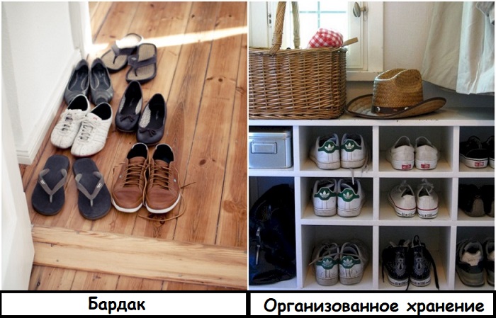 На первый взгляд кажется, что если поставить около стены пару ботинок, ничего плохого не случится. Но рядом с одной неизбежно появляется другая, а потом третья и четвертая. В этой зоне скапливается пыль, грязь, зимой образуются подтеки от снега, в результате чего и обувь, и прихожая выглядят не лучшим образом.
