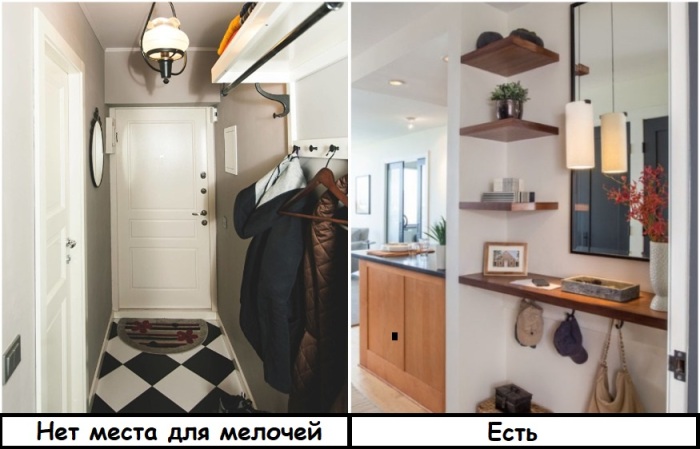 Для мелких вещей стоит предусмотреть специальную полку или столик