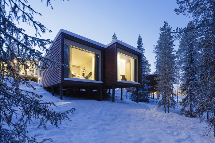 Те, кто всегда мечтал посмотреть на нетронутую арктическую природу и бескрайние снега, могут смело отправляться в один из самых удивительных и даже сказочных городов Финляндии – в Рованиеми, который находится за Полярным кругом. По понятным причинам в городе лучше не задерживаться, а сразу ехать в отель Arctic TreeHouse, построенный на лесистом склоне холма, хотя правильнее сказать, разбросанный между многовековыми деревьями. Отель может предложить отдельно стоящие на опорах деревянные шале с огромными окнами, выходящими на север, чтобы каждый «отшельник» мог любоваться Северным сиянием и полуночным солнцем, не пересекаясь с другими посетителями взглядом, и даже не вставая с постели.