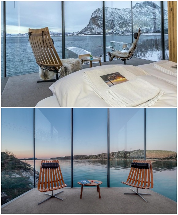 Чтобы любоваться прекрасным пейзажем и Северным сиянием, не нужно мерзнуть на улице. | Фото: hotelscombined.com.