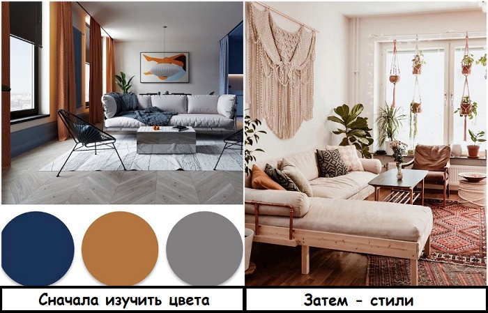 Сначала изучите цветовую гамму, затем - особенности стилей
