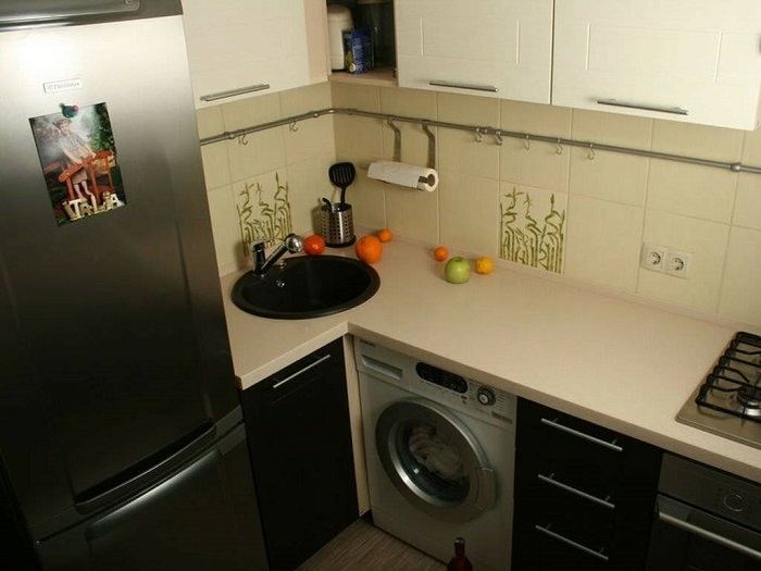 Раковина в углу кухни неудобная. / Фото: shtory-deco.ru