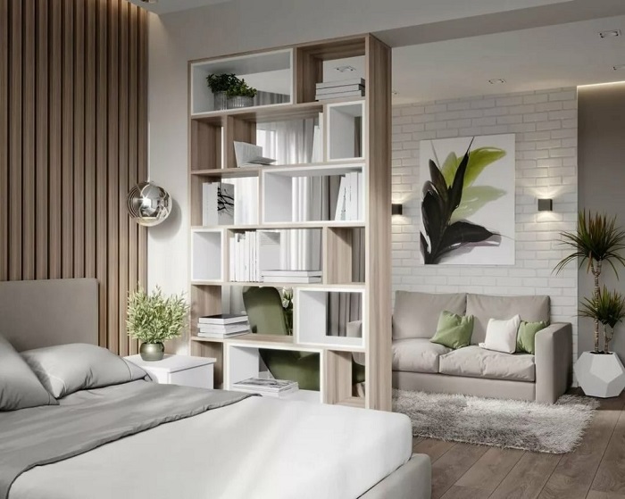 Вариант 4: Поставьте стеллаж между диваном и кроватью