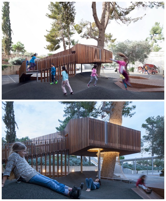 Домик на дереве во дворе Музея Израиля – место развлечений не только ребятни (Иерусалим). | Фото: architizer.com.