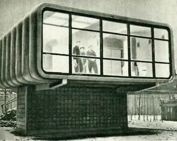 В СССР начало 60-х годов ознаменовало ударное строительство доступного жилья, в народе именуемого «хрущевками». Хотя в тот период умы архитекторов были заняты не только проектированием типовых пятиэтажек, порой случались неординарные эксперименты. Взять, к примеру, небольшой коттедж, в 1961 году появившийся в ленинградском спальном районе, который вызвал фурор сродни летающей тарелки с инопланетянами. Да это и понятно, мало того, что он имел фантастическую форму, так еще и построен был ...из пластмассы.