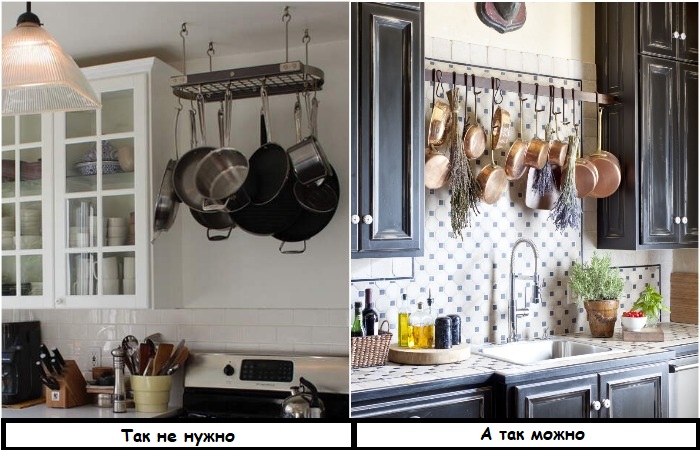 Рейлинг с посудой лучше не вешать над плитой