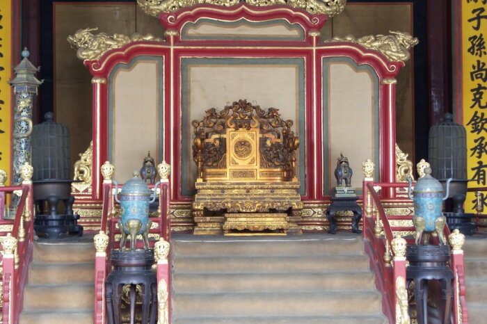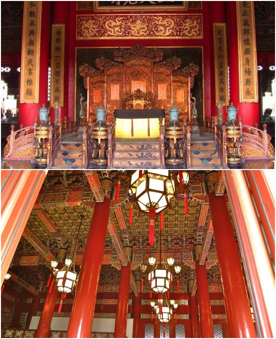 Тронный зал, где сохранился «Драконий престол» (Запретный город, Пекин). | Фото: ru.wikipedia.org.