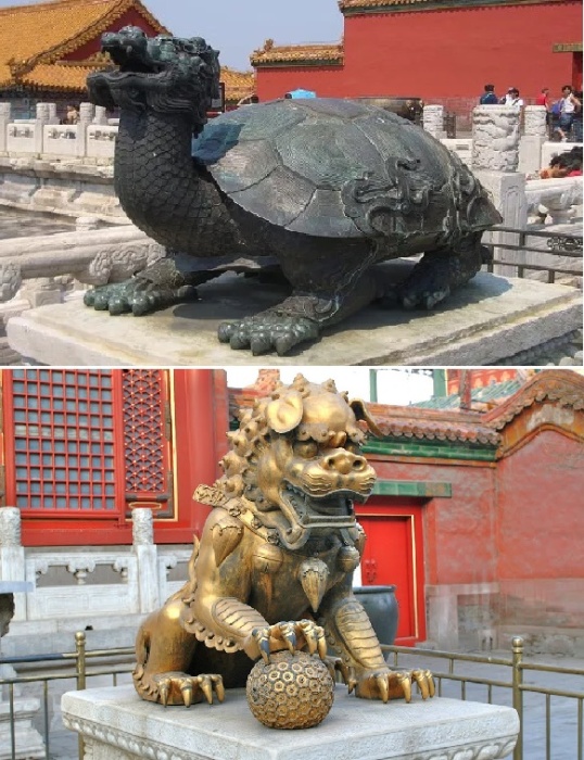 Бронзовые статуи украшают территорию Запретного города (Пекин, Китай).