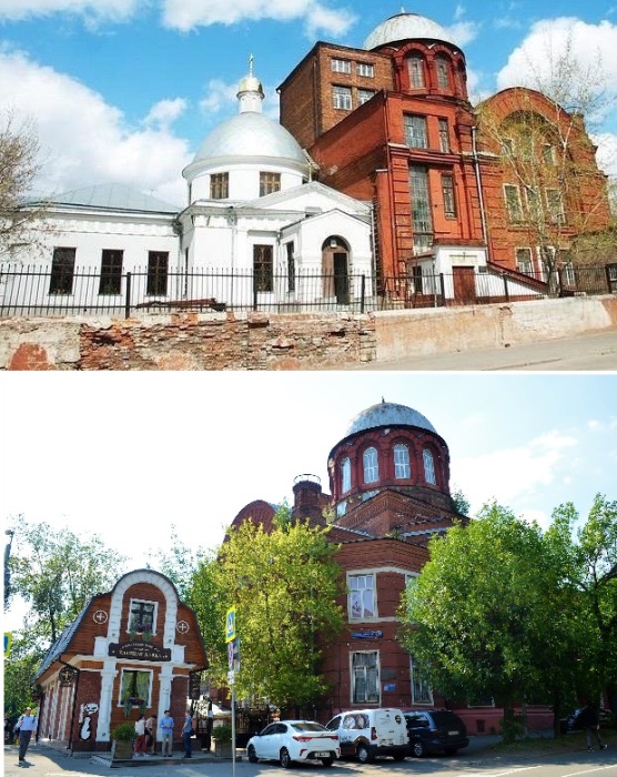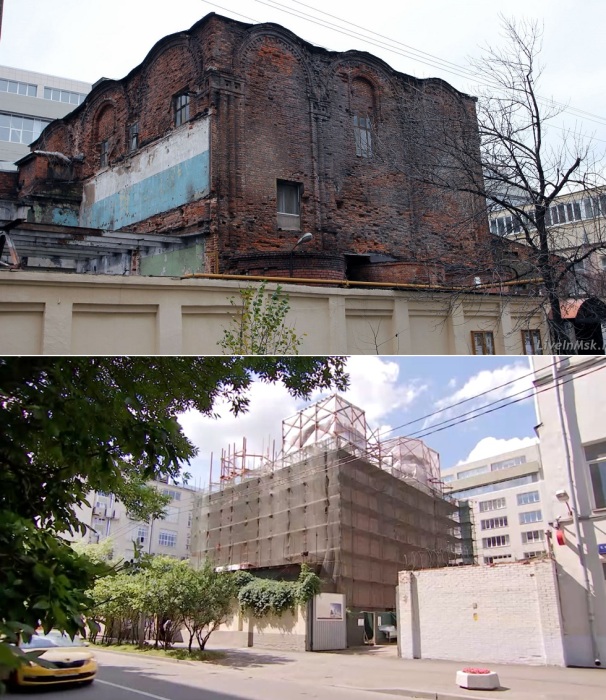Как бы некоторые индивиды не возмущались, что в Европе и Америке пустующие храмы продают частным лицам, а те превращают их в роскошные резиденции, пивбары и книжные магазины, но, согласитесь, такое решение куда лучше полного забвения и разрушения. Тем более, что на заре становления социалистического государства (СССР, конечно же) огромное количество культовых сооружений, если и не были снесены, то быстро превратились в склады, дома, культуры и зернохранилища. А как же обстоят дела сейчас? Заглянем в сохранившиеся храмы Первопрестольной, в большинство из которых верующим так и остался путь закрыт. 1. Церковь Святых Петра и Павла на Якиманке Церковь Святых Петра и Павла на Якиманке в 1882 году (Москва). | Фото: moscow.media. Якиманка – исторический район Москвы, который давно стал центром притяжения туристов, ведь здесь расположены Государственная Третьяковская галерея, модные коктейльные бары и фьюжн-рестораны с кухней, Парк Горького. Только вот скромную церквушку, построенную в 1651 году, никто не включает в туристические маршруты, несмотря на почтенный возраст. Да это и понятно, ведь древняя святыня давно уже не принимает прихожан, а началась грустная история перевоплощений задолго до советской власти, которая напрочь отвергала религию. После 1920-х гг. церковь несколько раз перестраивали, часть здания отошла к жилому дому, а часть – превращена в офисы. | Фото: fortexgroup.ru. Мало того, что, будучи в статусе храма она подвергалась не одной перестройке и реставрации, теряя свой первозданный вид, так еще и войска Наполеона в 1812 году превратили ее в конюшню. Позже ее привели в порядок, перестроив в трапезную и колокольню в модном тогда неорусском стиле, но приход большевиков навсегда освободил святыню от религиозного начала. Оставшись без куполов, башен и башенок, колокольни и колоколов она до 1960 г. являлась жилым объектом, в который церковь превратили в далеких 1920-х гг. После этого ее вместе с пристройками и кардинальными перестройками, передали торговому представительству тогда еще ГДР, а теперь в трансформированном здании находятся офисы и бизнес-центры. 2. Церковь Покрова Пресвятой Богородицы Каринкинской старообрядческой общины в Таганском парке Проект обновления молельного дома, который превратили в старообрядческую церковь Покрова Пресвятой Богородицы Каринкинской (Москва). | Фото: nataganke.blogspot.com. История этой церкви изначально была трагичной, ведь предназначался молельный дом для старообрядцев, которые подвергались гонениям со стороны церкви, а значит и государства. Первоначально молельный дом, построенный по проекту Т. Ф. Борисова в XIX в., судебным решением должен был демонтирован, но руки у исполнителей не дошли до этого действа, поэтому он практически тайно принимал прихожан до 1907 года, пока не были дарованы свободы. Верующие, посещающие Каринкинский храм, обратились с просьбой о придании моленному дому вида церкви, на что получили разрешение от самого государя. Так выглядело здание церкви вплоть до 1990-х годов (церковь Покрова Пресвятой Богородицы Каринкинской, Москва). Появление купола с крестом, колокольни и ограды со Святыми воротами, выполненные по проекту архитектора Викентиевича Харко – большого почитателя модного в то время модерна, превратило незаметное сооружение в величественную церквушку, которая просуществовала в неизме