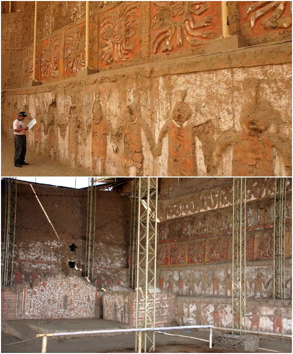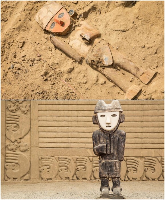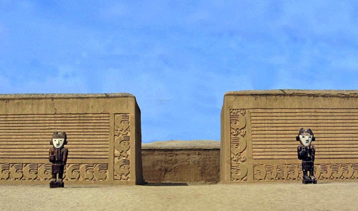 Несмотря на то, что древняя цивилизация Чимор была высокоразвитым обществом, люди верили, что глиняные великаны защитят их от злых духов и недругов (Chan Chan, Перу). | Фото: machutravelperu.com.