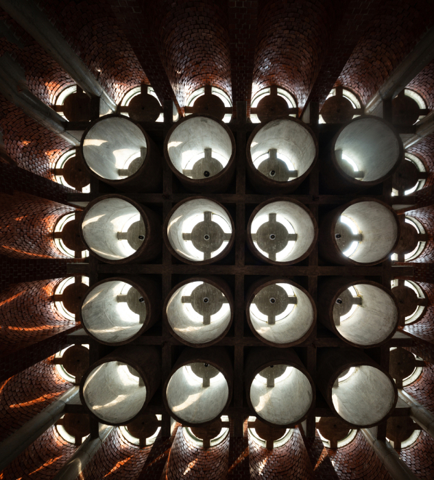 36 железобетонных труб разного диаметра заменили традиционный потолок и стали современной альтернативой куполам (Маникгандж, Бангладеш). | Фото: archdaily.com.