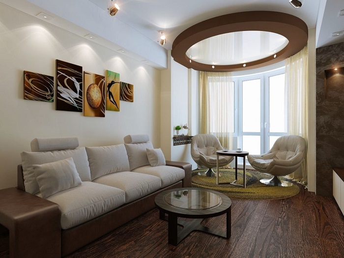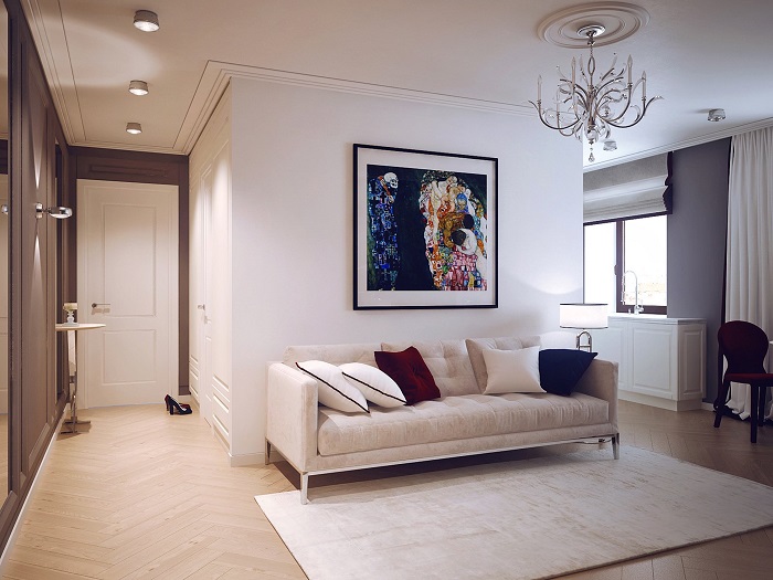 Однако снос стен – не единственное, что нужно сделать. Не менее важно провести правильное зонирование пространства. Лучше всего сделать так, чтобы мебель находилась на расстоянии от стен. Сгруппируйте ее согласно функциональным зонам – тогда большая комната будет выглядеть органично. Так, например, если вы объединяете гостиную с кухней, отдельно должны располагаться кресла в тандеме с журнальным столиком и диваном, отдельно – обеденный стол и стулья, отдельно – рабочая зона, если она предусматривается в новом помещении, и т.д.