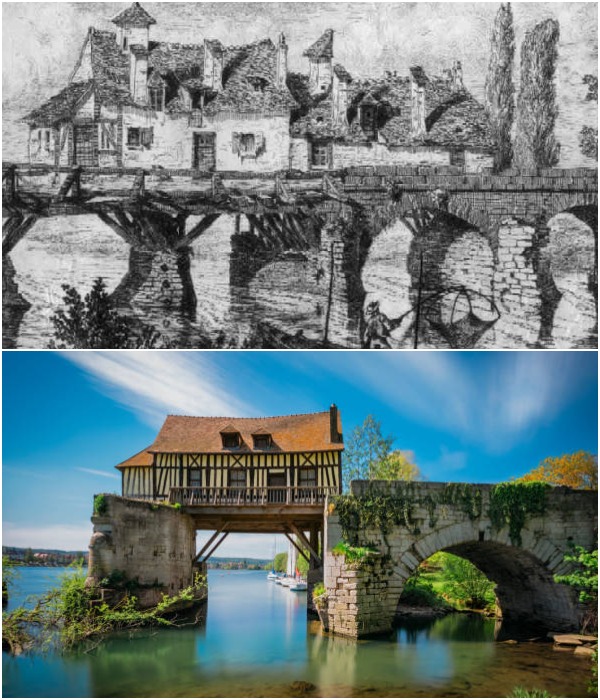 Мельница, стоящая на 2 опорах каменного моста XII века – одинокий свидетель прошлого и колоритная достопримечательность настоящего (Вернон, Франция). В живописной коммуне Бургундии, история которой восходит к X веку, сохранилось уникальное сооружение (как для современников конечно, же). В былые же времена подобного рода строения не вызывали никаких восторгов или удивления, поскольку это был единственный способ облегчить себе труд. Речь идет о мельницах, которые устанавливали на реках, их помогали вращать жернова. В коммуне Верон в XVI веке над Сеной был построен целый мукомольный комплекс из 5 мельниц, где мололи зерна кукурузы. Наводнения, военные действия и время сделали свое черное дело, поэтому только одна из них сохранилась до наших дней. И пусть она не имеет особой архитектурной ценности, подвешенная на оставшемся фрагменте еще более древнего моста, она стала символом региона, который можно увидеть на открытках и в путеводителях.